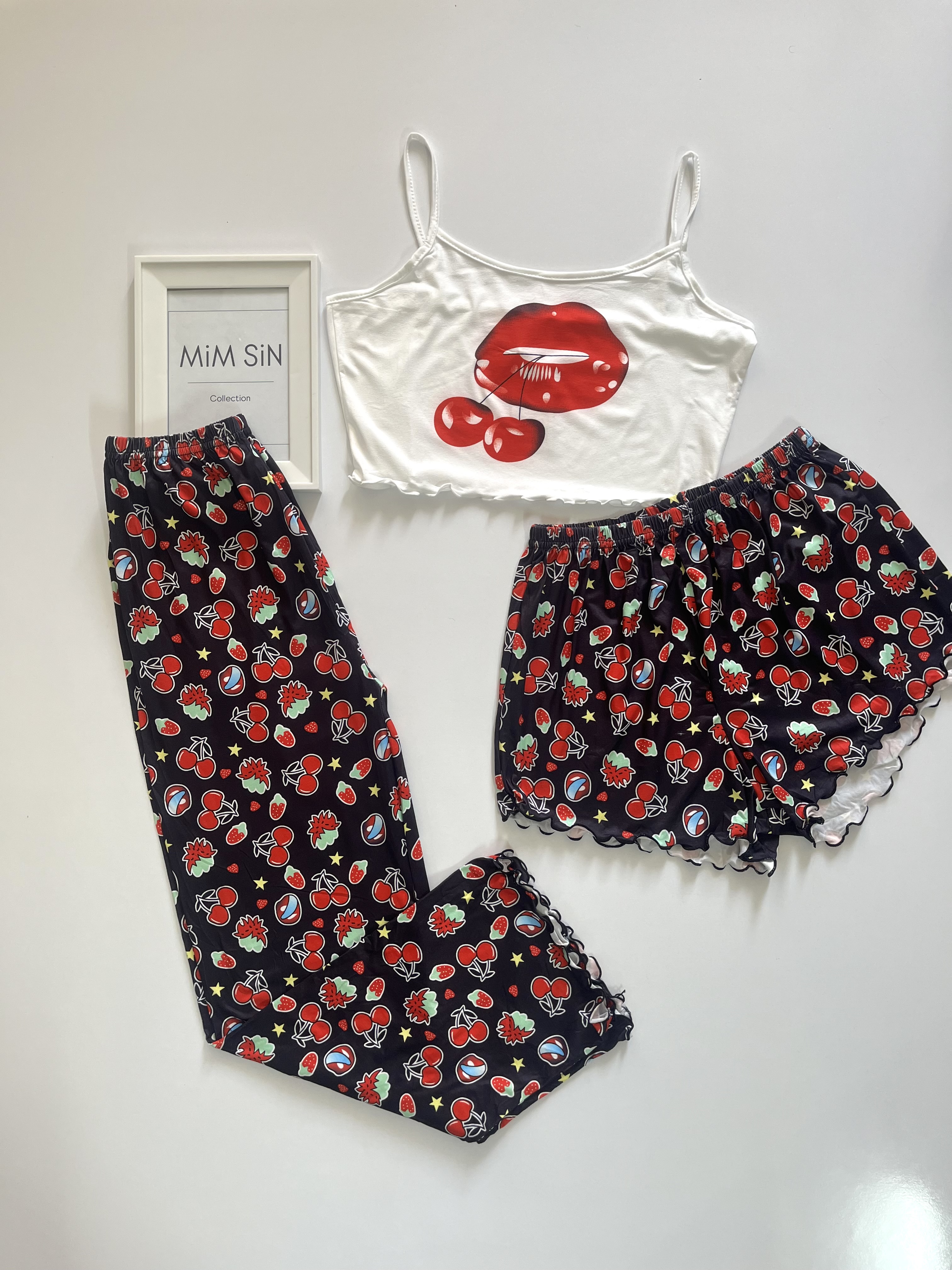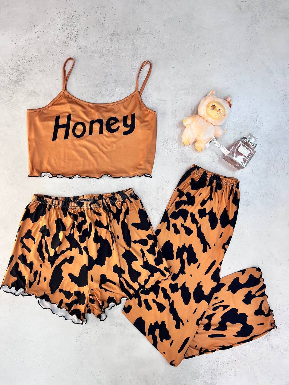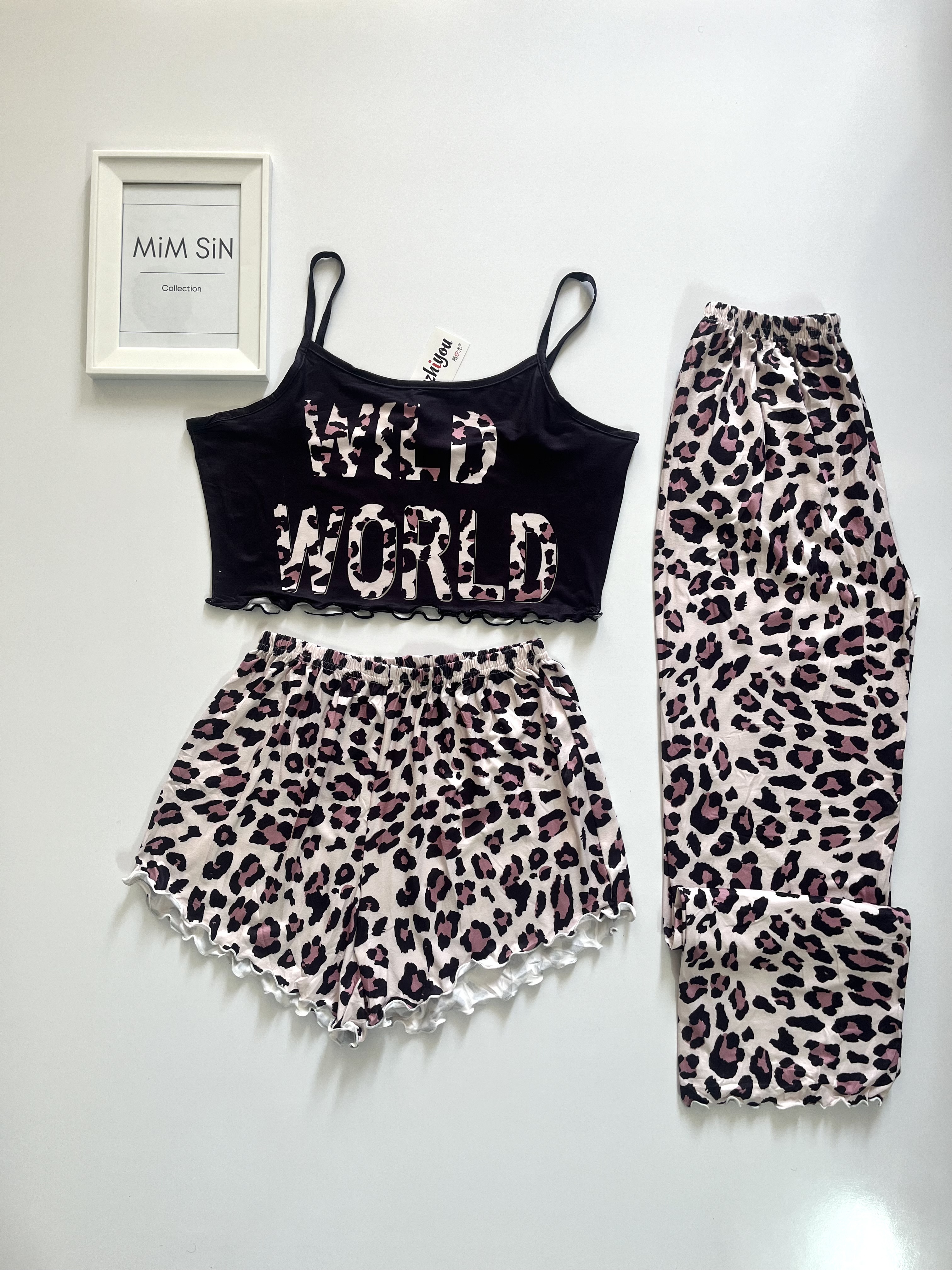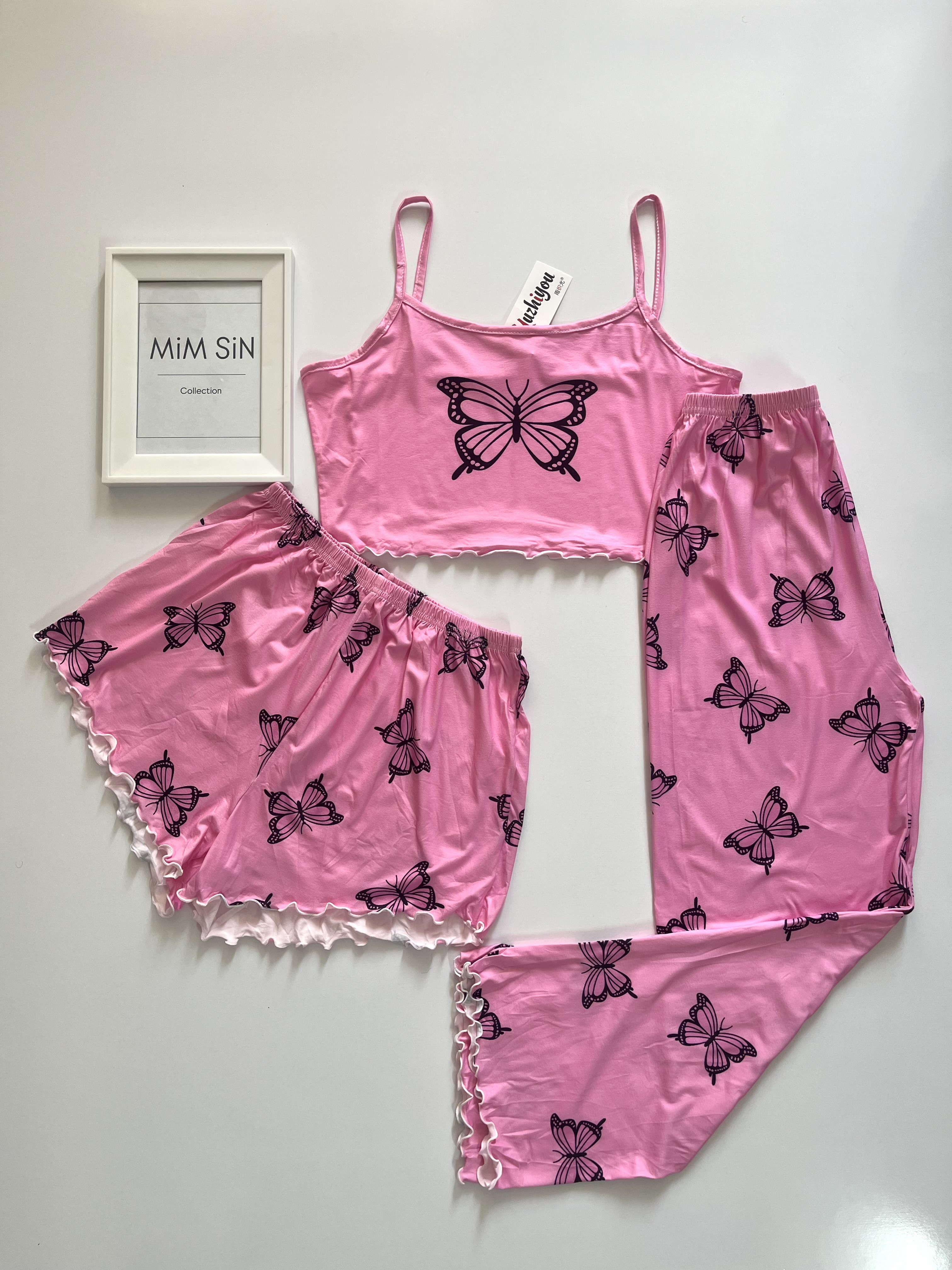 سه تیکه ( کراپ + شورتک + شلوار ) وارداتی